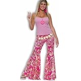 Womens Hippie Costume Pink 70s Print Bell Bottom Pants Womens US Standard (up to 8/10) (Apparel)