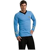 1966 brought us one of the most beloved and fan favorite sci fi hits of all time, STAR TREK! No matter how old you are, you'll always remember seeing Capt. Kirk, Scotty, Uhura, Sulu, Chekov, Dr. McCoy and Spock fly through space inside the Enterprise! Now the adventure continues... This licensed edition adult Blue Shirt boldly creates Spocks classic look! Costume Includes: shirt and emblem pin. Show your rank as a member of Starfleet within the United Federation of Planets by wearing this shirt preparing you for all the action! Be sure and check out our Spock wig and ears as well as all our other Star Trek costumes, enough for the whole family to get in on the fun! Not wearing this deluxe shirt would be illogical! Read more