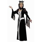 Is this Black Queen being stylish in her little black dress or is she just plain evil? You wear it you decide! This elegant costume features a long black dress with silver accents. Headpiece is also included and features a black crown with silver tri Read more